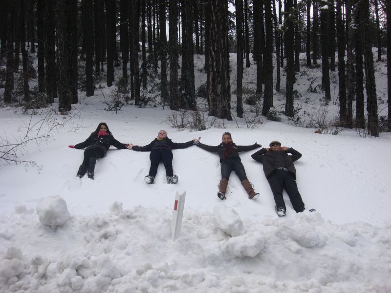 Yemek sonrası güzel bir yürüyüş yaptık. Orman ve kar. Kartopu oynadık, kardan adam yaptık.