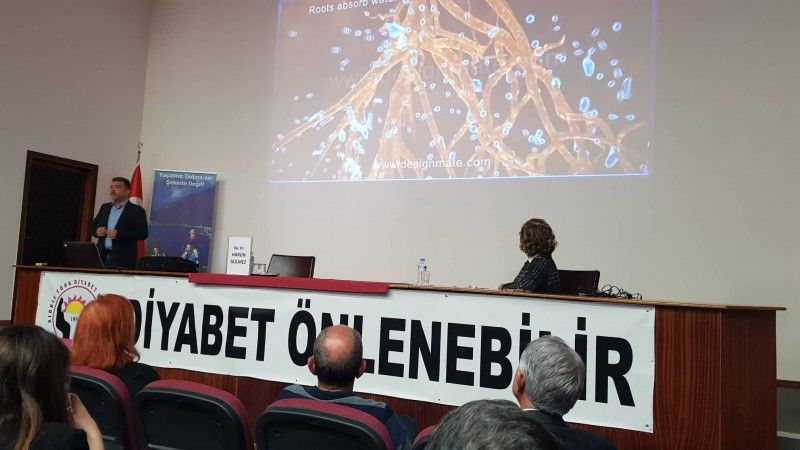 23 Kasım 2019 Cumartesi günü Thalassemia salonunda gerçekleşen "Yaşamın Sesine Kulak Ver" isimli konferansımızda konuşan hocalarımız sindirim sisteminin nasıl çalıştığı, glikoz denen şekerin vücudumuz için önemi ve nasıl enerjiye dönüştüğü, beslenmenin sadece rastgele bir şeyler yemek olmadığını, sağlıklı yaşamımızı sürdürebilmek, hastalıklarla savaşabilmek ve fonksiyonlarımızı sürdürebilmek için almamız gereken temel besin ögelerini en sağlıklı biçimleri ile alma eylemi olduğunun altını çizdiler.